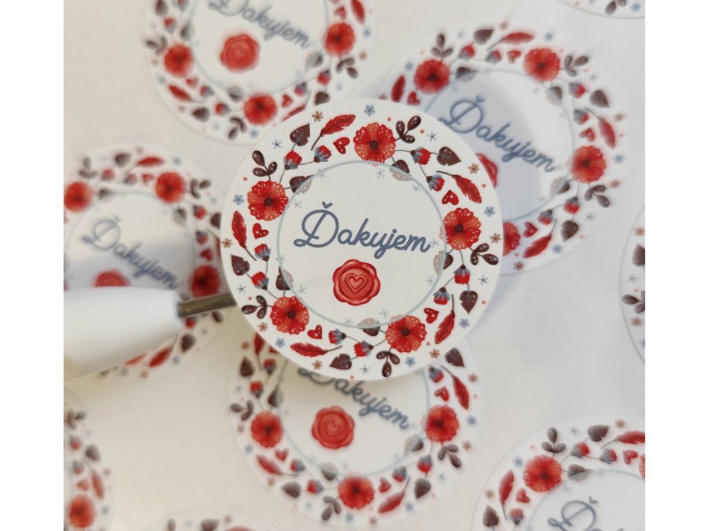 Jednoduché a nadčasové ďakovné nálepky so slovom „Ďakujem“, ktoré sa hodia ku každému baleniu.